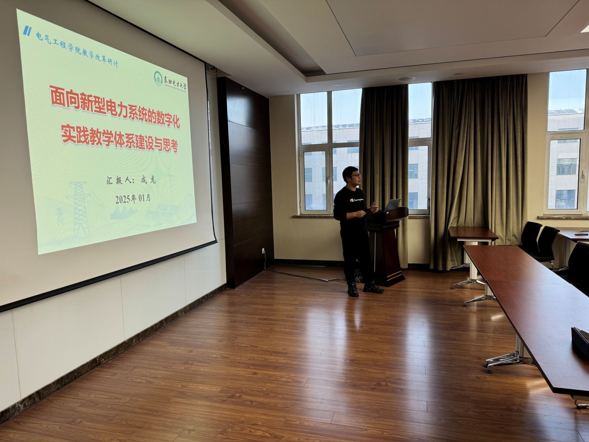 成龙老师的报告《面向新型电力系统的数字化实践教学体系建设与思考》,就问题背景、数字化建设、案例分享三方面做了报告交流。成老师从实践教学角度提出需求与问题、新型电力系统与传统电力系统的区别,交流了数字化建设的做法与实践、未来实验室探索。最后从大连理工大学、天津大学为例引发一系列的思考。