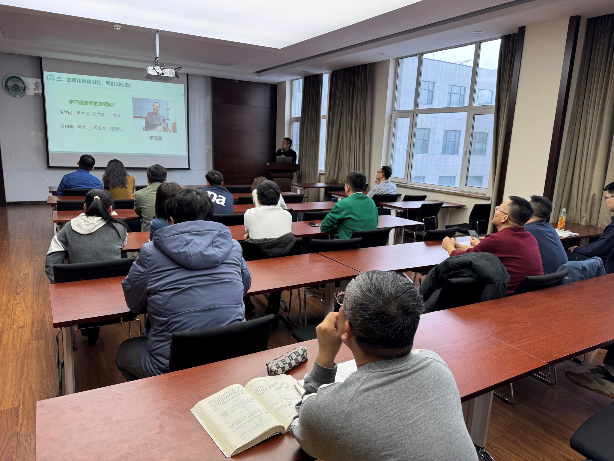 教师汇报本学期他们在教学改革创新方面的学习、研究和参加教学会议的所得和思考。本次会议由副院长杨修宇主持,系部主任、课程负责人和部分教师代表参加了本次会议。