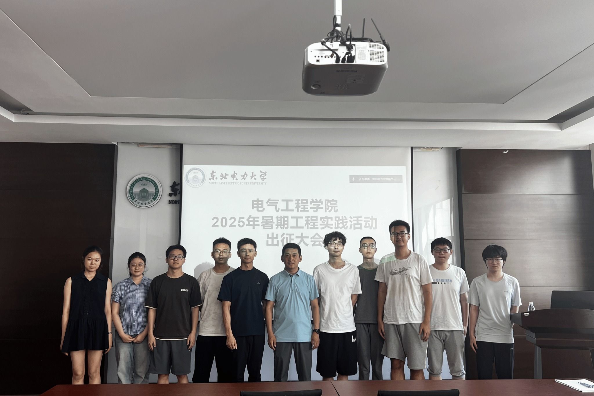 2025年暑期工程实践活动出征大会在电动大楼A412举行。此次大会为即将奔赴江苏金智科技股份有限公司、烟台东方威思顿电气有限公司、天宇电力设备有限公司等实习单位的大二、大三共19名学生壮行,助力他们在实践中实现理论与能力的深度融合。