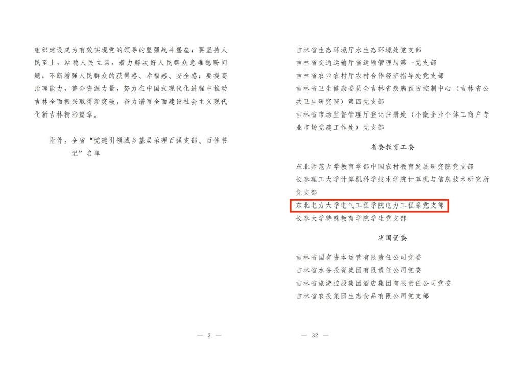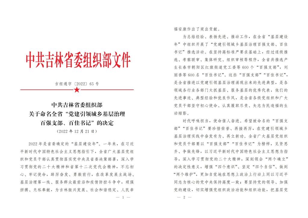 近日,中共吉林省委组织部正式印发了《关于命名全省“党建引领城乡基层治理百强支部、百佳书记”的决定》,我校足球直播平台