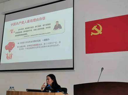 宋春华老师为大家讲授了题为《百年岁月,百年梦想—中国共产党的初心使命》的专题党课,大家共同回顾了近现代中国的历史,坚定了中国共产党带领下的中国特色社会主义的道路、理论、制度和文化的全面自信,将为实现中华民族伟大复兴贡献自身力量。