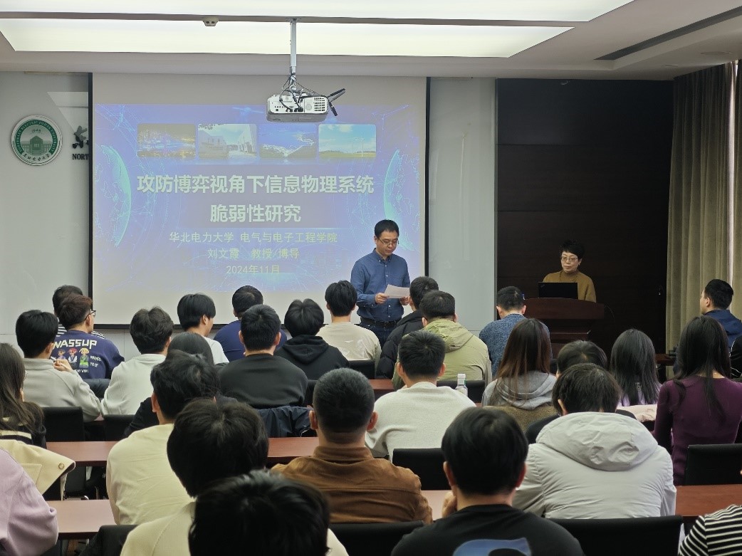 邀请,我校校友、国家重大专项首席科学家、华北电力大学教授刘文霞老师在电动楼A412作了题为《攻防博弈视角下电力信息物理系统脆弱性辨识》的专题报告。报告会由足球直播平台