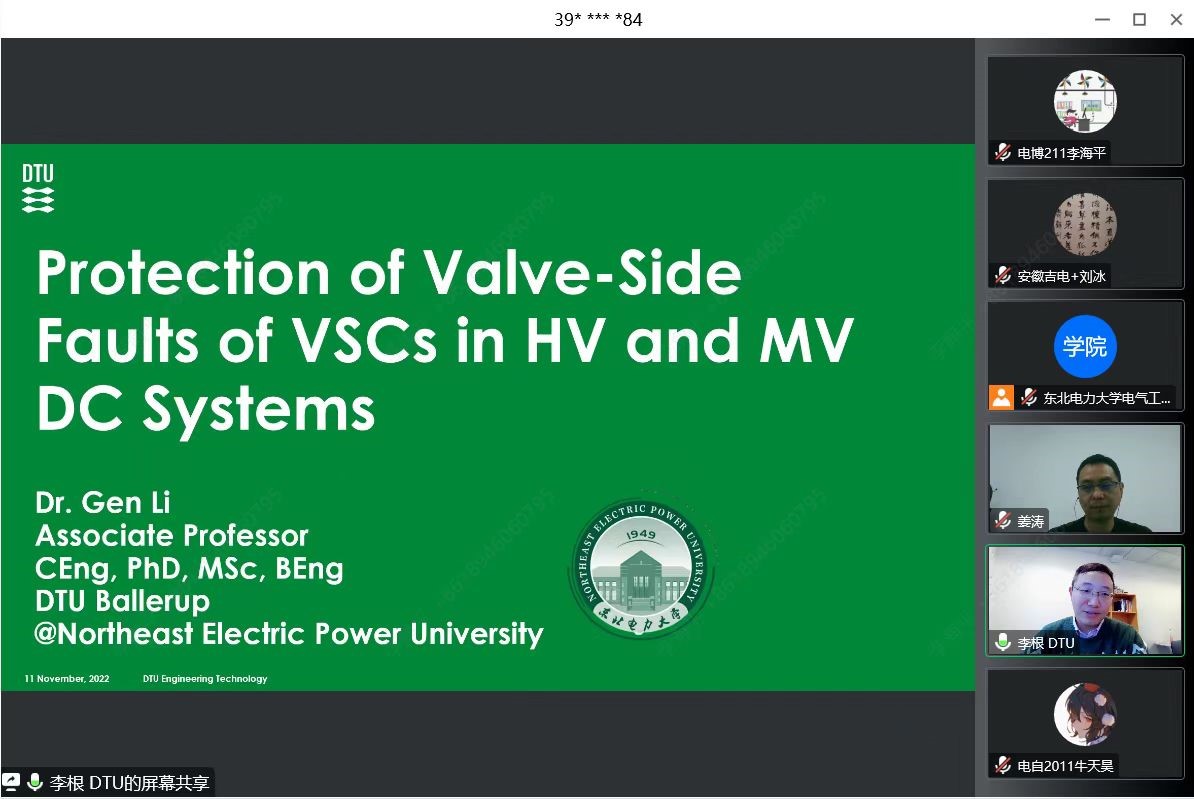优秀校友、丹麦科技大学李根博士通过腾讯会议方式作了题为《高压和中压直流系统中换流器阀侧故障的分析与保护》的线上学术报告,并在腾讯会议直播平台进行了直播。本次学术报告由姜涛教授主持,足球直播