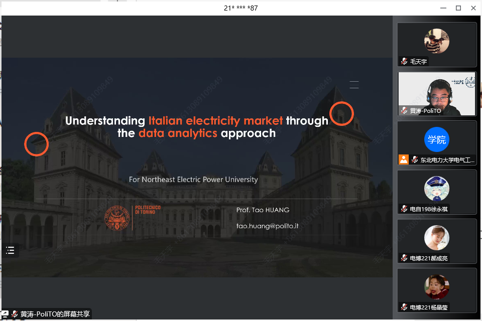 邀请意大利都灵理工大学黄涛教授通过腾讯会议方式作了题为《透过数据分析深入理解意大利电力市场》的线上学术报告,并在腾讯会议直播平台进行了直播。本次学术报告由姜涛教授主持,足球直播