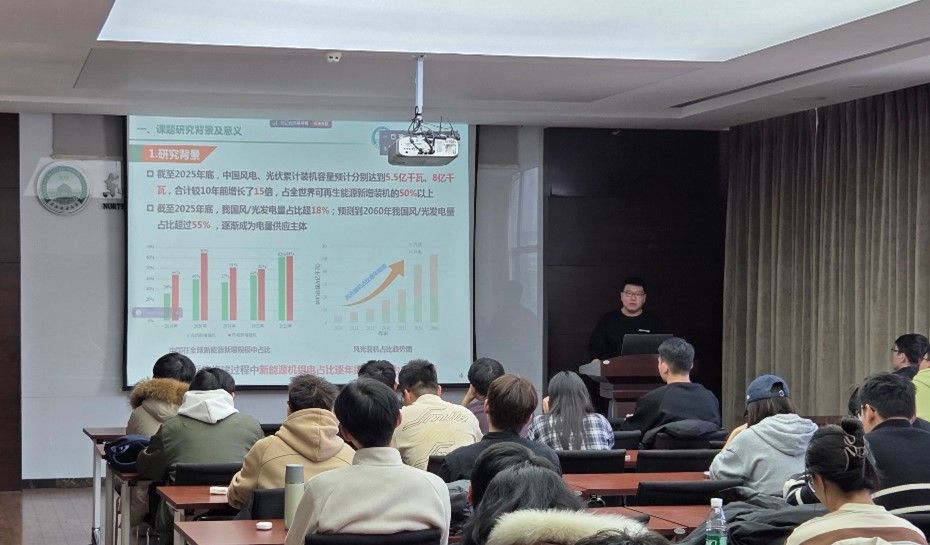 汇报结束后,姜老师与在场师生围绕超速与变桨控制实现减载运行技术、变速风机全工况自适应减载控制展开了热烈讨论,并对相关问题进行了详细解答,现场互动积极,学术氛围浓厚。