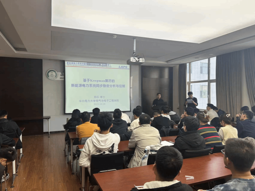邀请,华北电力大学郑乐博士在电动大楼A412作了题为《基于Koopman算符的新能源电力系统同步稳定分析与控制》的学术报告。本次学术报告由足球直播平台