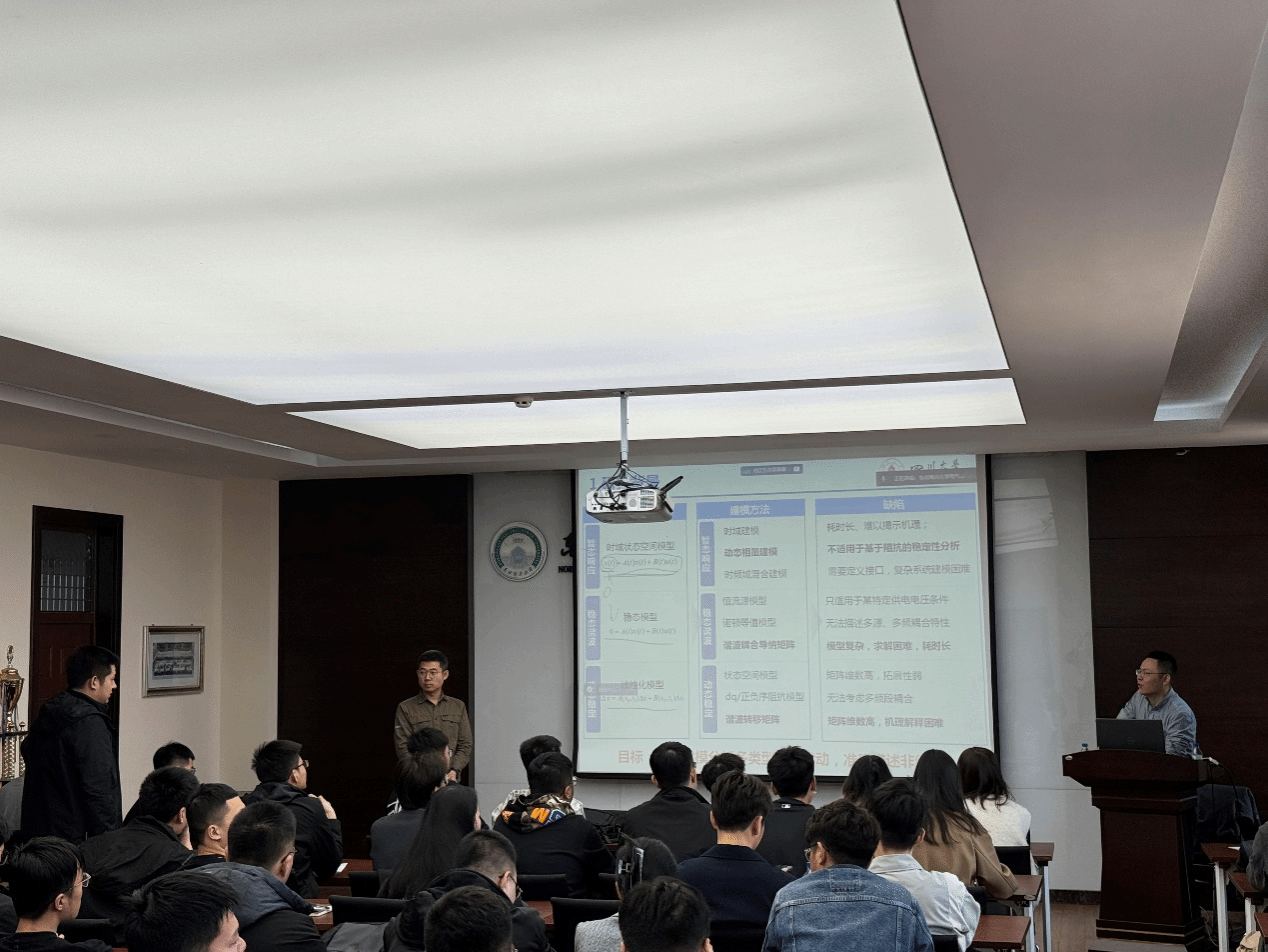 邀请,四川大学教授王杨博士在电动楼A412作了题为《基于谐波状态空间的新型电力系统宽频扰动建模与分析》的学术报告。报告会由足球直播平台