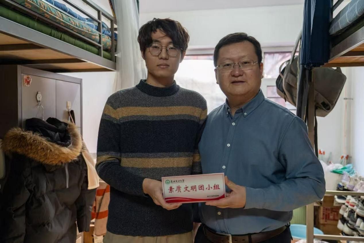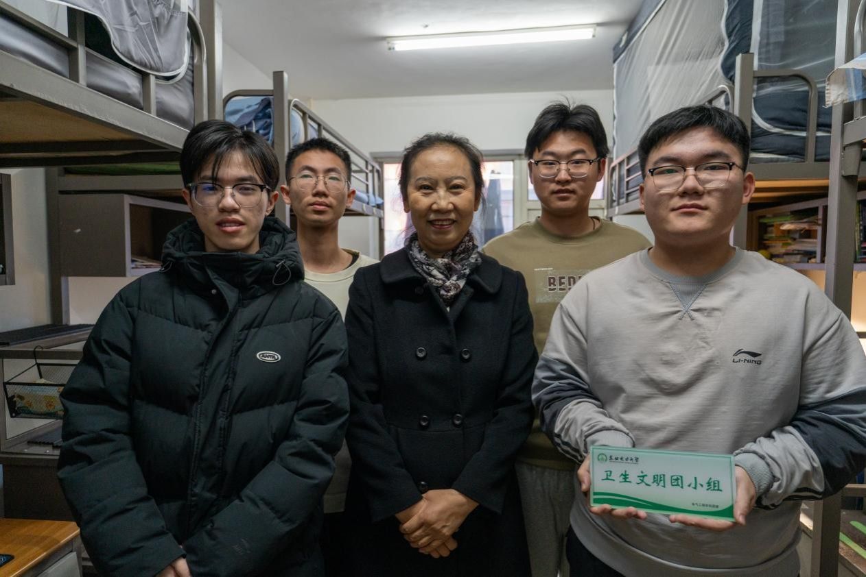 领导与校友一行深入学生宿舍走访慰问,赵丽书记、綦雪松校友与兰阳书记为素质文明团小组、卫生文明团小组等获评集体郑重授牌,以表彰其在班级建设、文明养成、卫生维护等方面的突出表现,引导各团小组发挥示范引领作用,带动全院学子共同营造文明和谐的校园氛围。