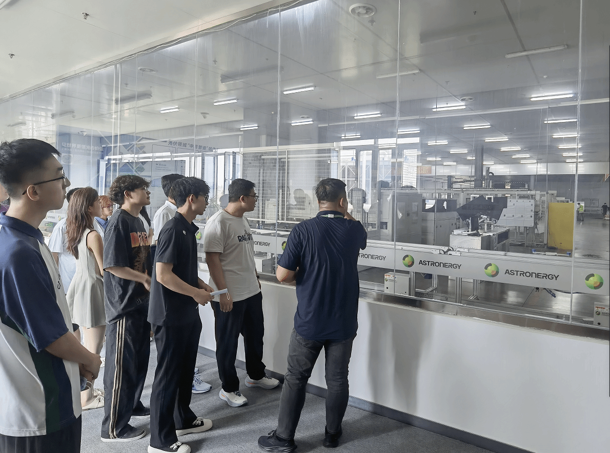 在中车新能源装备产业基地,厂区负责同志详细介绍了项目的建设和投产情况,带领师生参观了叶片打磨车间和电机自动化组装车间,并对风机组装、系统测试和岗位用工等情况进行了逐一解答。在正泰新能6GW高效组件及智能制造产业园,厂区负责同志则从公司项目的全球布局、产能规划的讲解入手,围绕光伏发电装备的制造和维护等问题与现场师生开展互动交流,他同时对各位同学日后有缘加入正泰新能共同助力新能源事业的发展给予殷切期望。