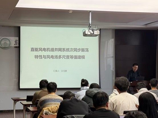 汇报结束后,王老师与在场师生围绕直驱风电机组暂态能量特性分析与次同步等幅振荡形成机理展开了热烈讨论,并对相关问题进行了详细解答,现场互动积极,学术氛围浓厚。