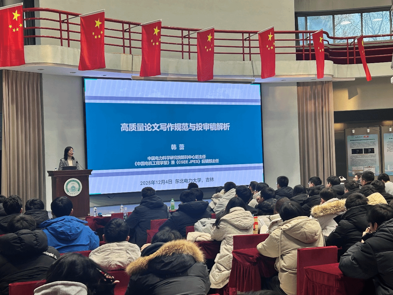 12月4日15:00,应东北电力大学电气工程学院邀请,我校校友、中国电力科学研究院期刊中心韩蕾副主任在学术会议中心作题为《高质量论文写作规范与投审稿解析》的学术报告。报告会由电气工程学院副院长姜涛教授主持,学院部分教师及硕士、博士研究生参加了本次报告会。